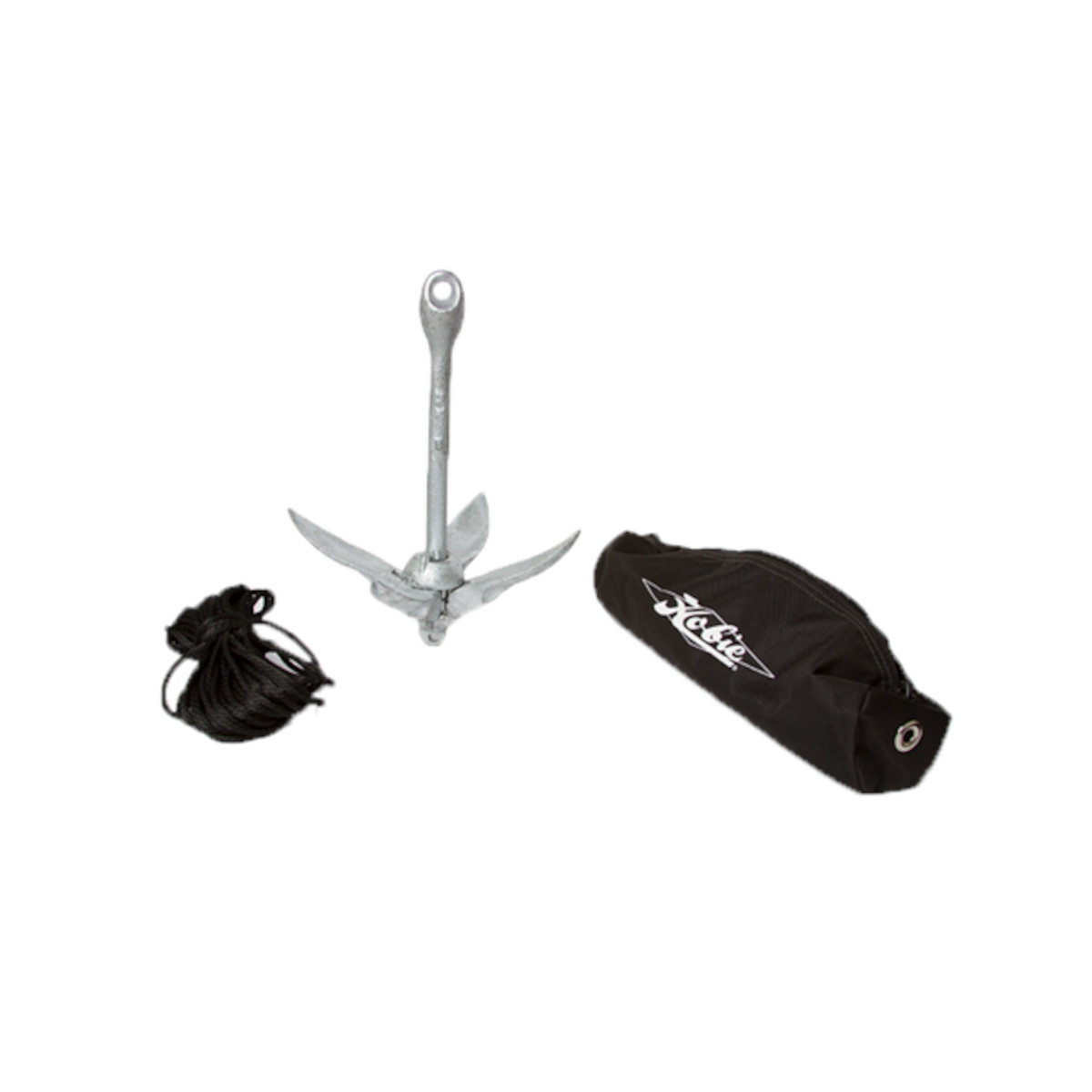 The Hobie Kayak Anchor Kit is a 3.5 pound anchor that folds up into itself with a slidable locking feature. This kit includes anchor, line and a Hobie Storage bag.