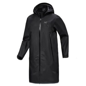 The Women's Arc'teryx Beta Coat brings all-mountain protection with a lighter footprint and longer length. The main fabric sheds wind, rain, and snow. Its recycled C-KNIT backer improves breathability, and the durable face is made with 100% recycled nylon. Its length rides comfortably under a pack’s hipbelt and aligns with longer midlayers, an adjustable DropHood provides coverage with an integrated collar to protect the neck, and the two-way front zipper gives you freedom of stride.