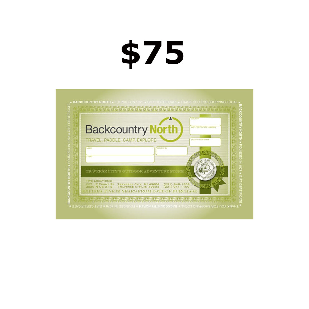 $75 Backcountry North Gift Certificate (Redeemable IN-STORE)