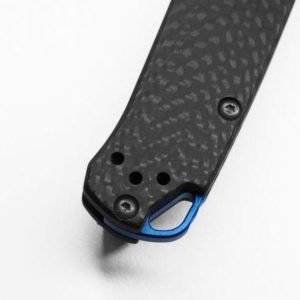 Compact with a touch of class. For those looking to elevate their everyday carry, look no further than the all-new 533-3 Mini Bugout®. Taking cues from its larger counterpart, the 533-3 makes the leap to CPM-S90V super steel and milled carbon fiber handle, featuring a blue anodized aluminum back-spacer and blue thumb studs. Merging signature ultralight utility with ultra-premium materials, the 533-3 Mini Bugout® sets a new standard for this popular line of sub-compact EDC pocket tools.