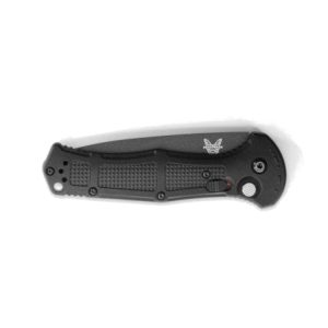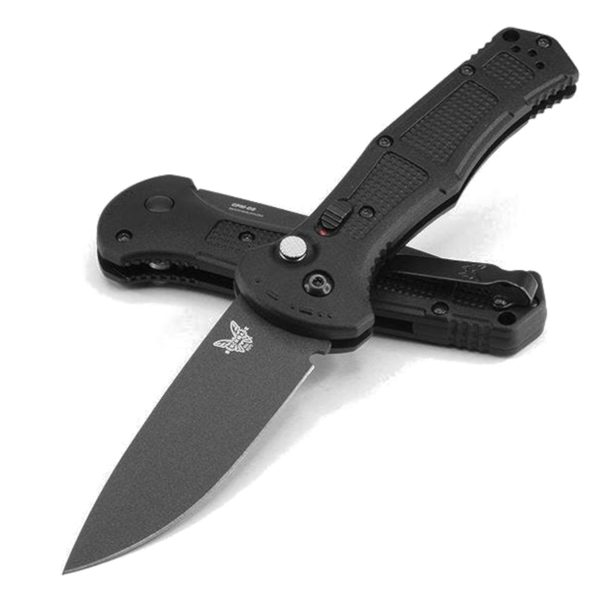 On the heels of the explosively successful launch of the Claymore™, there were many enthusiastic requests for a plain-edge variant, and now Benchmade is proud to present the new 9070BK Claymore™. This highly anticipated variation of an instant hit retains every crowd-pleasing feature, including the ultra-tough and laser-sharp CPM-D2 blade, robust ultralight construction, and namesake-appropriate detailing. This nonserrated push-button auto fires with authority, sure to energize casual-carry and hardcore users alike.