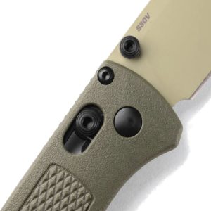 Outdoors adventurists’ fav: the Benchmade Bugout Dark Olive. An ode to these tough and earthy ramblers, the new 535TN-11 Bugout® dons overlanding rig-inspired Dark Olive Grivory handle scales with a black anodized aluminum thumb stud and barrel spacers. Featuring a CPM-S30V steel blade with a Desert Verde Cerakote finish, the 535TN-11 loves a good off-road journey.