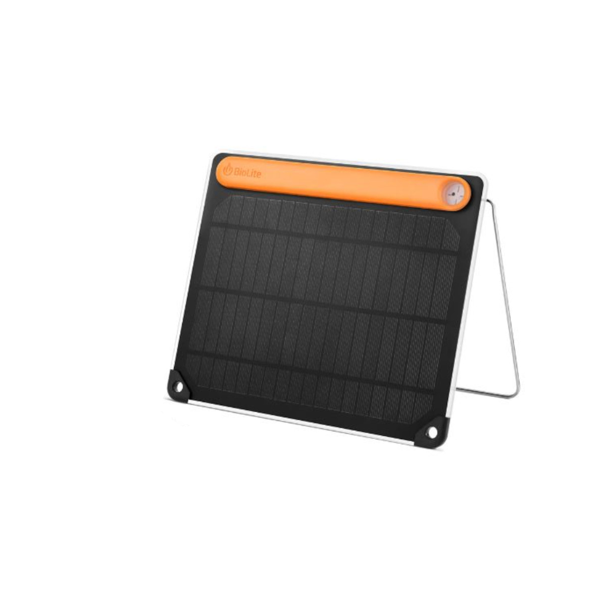 Get the most from the sun with the lightweight & portable BioLite SolarPanel 5+. Featuring BioLite's Optimal Sun System, an integrated sundial aligns you to the sun to capture direct rays while a 360 degree kickstand simplifies positioning on uneven terrain. The 3,200mAh onboard battery stores energy for later, allowing you to charge devices when you need it most. Power phones, tablets, and BioLite gear with this ultraslim 5-Watt panel.