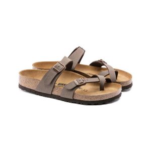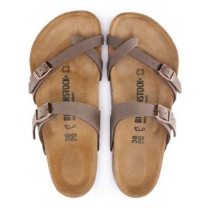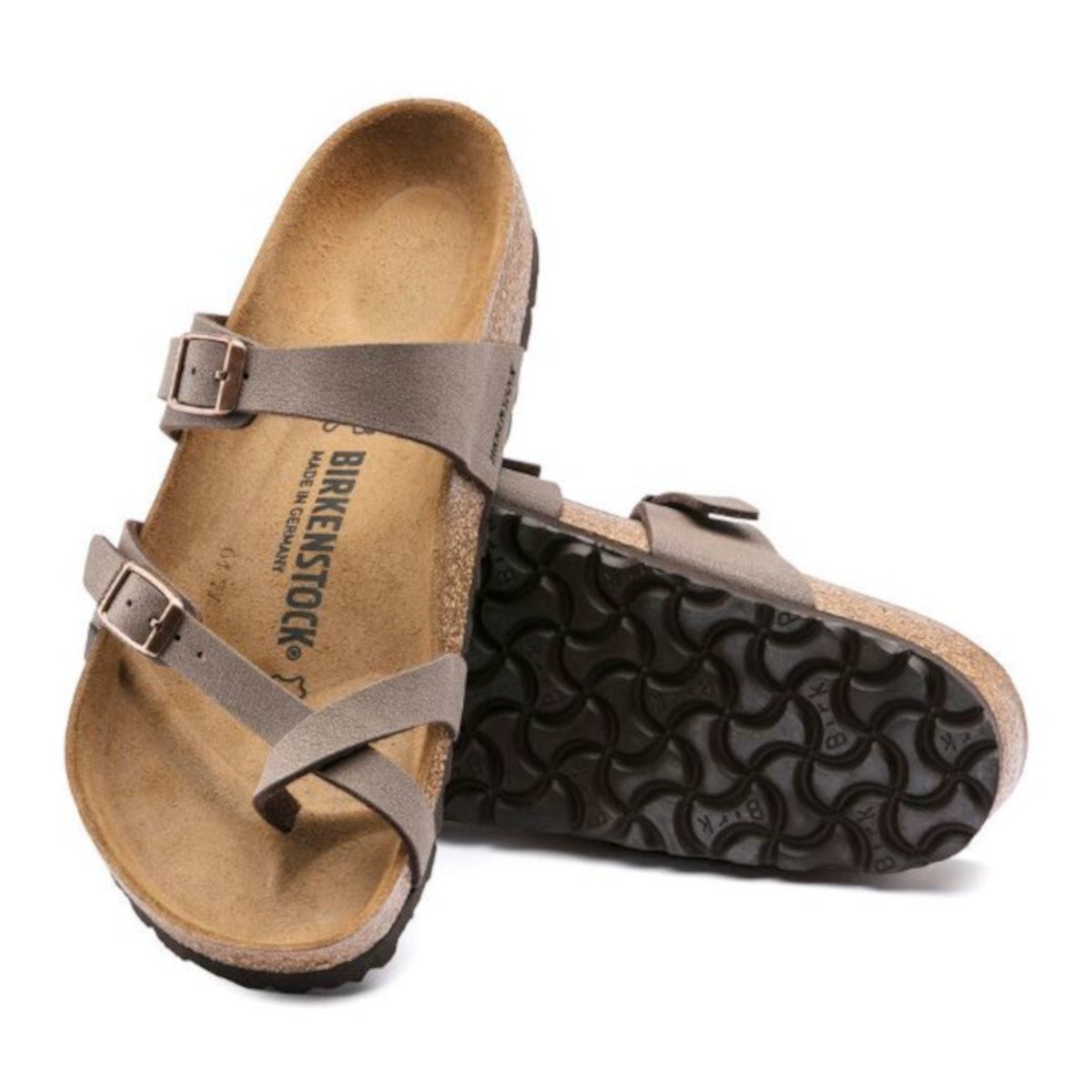 Supremely comfortable with sophisticated, crisscross straps, the Mayari redefines the thong sandal with a single toe loop. The style comes in smooth Birkibuc® for a brushed, nubuck-like finish. Complete with classic BIRKENSTOCK design elements, like adjustable buckle closures and a contoured footbed for the ultimate in support.