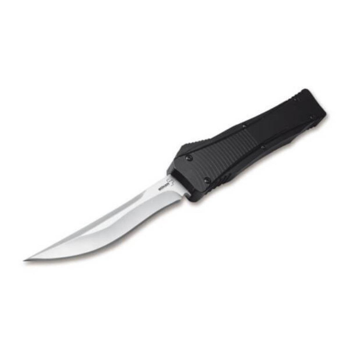 The Boker Plus Eagle OTF, designed by Raimund Lhotak, fits perfectly in the hand thanks to its titanium-coated handle and ergonomic design. The reliable mechanism opens and closes the blade by spring force via the release slide, which guarantees quick operation. The breathtaking dynamic grinding lines and the two-tone finish also make this knife an exquisite collector's item. With recurve blade made of D2.