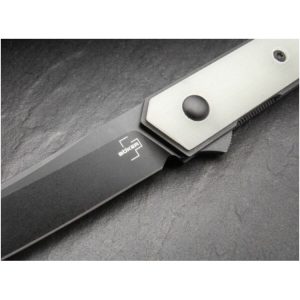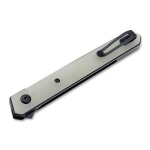 The slim design and the exclusive choice of materials make the Boker Plus Kwaiken Air a classy crossover between a gentleman's folder and a tactical knife. To make this bridging even easier, the Kwaiken Air Mini offers the same outstanding qualities as its big brother with significantly reduced and thus more pocket-friendly dimensions. With a straightforward and practical shape, the modern pocket knife has become a true icon. The clean lines and slim design have been further optimised for uncompromising weight reduction in the lightweight version, although the knife still holds the entire blade when closed. The flipper ensures intuitive operation and additional safety, while the linerlock securely locks the ball-bearing blade made of black-coated VG-10. The lightness of the Gentleman Folder is underlined by the handle scales made of Natural Jade G10, the semi-transparent original variant of the resistant composite material. Supplied with a lanyard hole, a removable deep-carry clip (tip-up/r) and a high-quality nylon pouch for storage.