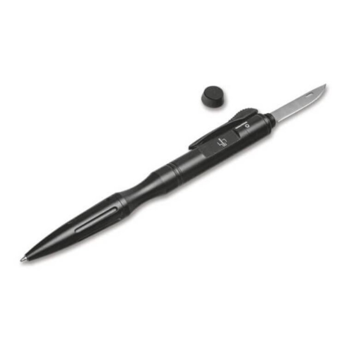 In addition to the ballpoint refill, the high-quality Tactical Pen made of aluminum accommodates an four centimeters long D2 blade in the back of the handle. Thus, small cutting tasks such as opening a package can be done in no time. The blade is operated via the clip.