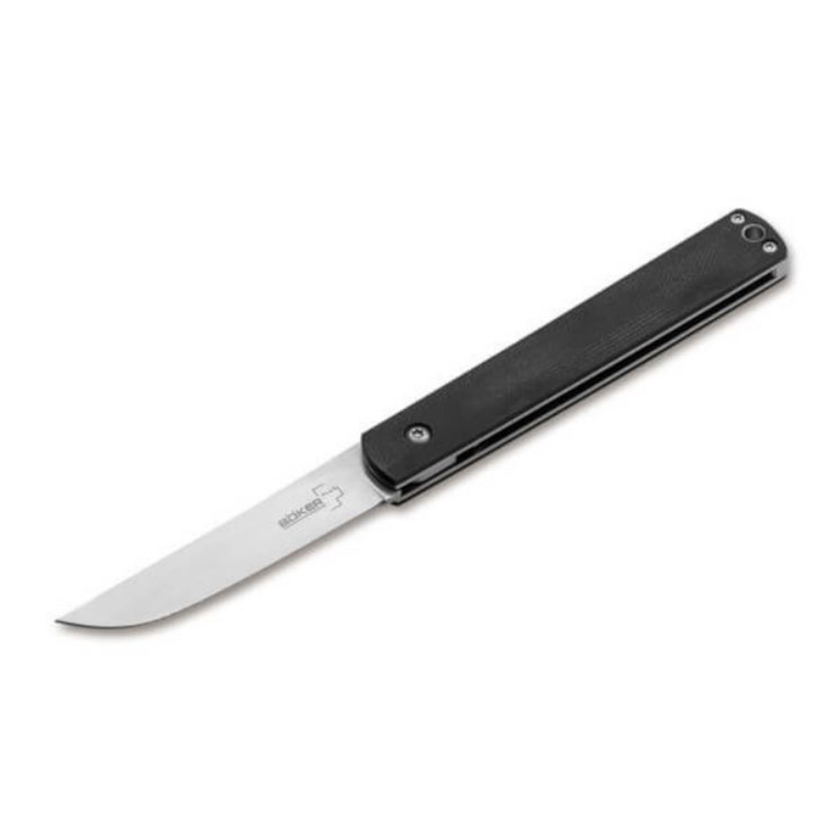 The slender build and lightweight construction of the Boker Plus Wasabi complement the straightforward design and classic Japanese blade to make an elegant everyday knife. The blade with ball bearings opens with a front flipper and is kept open as a slipjoint with a detent ball. The blade is made of reliable 440C. Handle with stainless liners and scales of black G10. With milled clip and high-quality nylon case for storage.