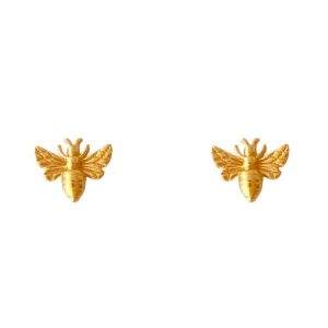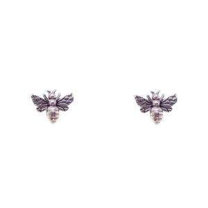 Itty-bitty sterling silver honey bees buzz easily in your ears. Cast in Thailand from an admirable Fair Trade company. A must have for anyone who loves bees both for their sheer cuteness as well as their powerful importance to our planet's ecosystems.
