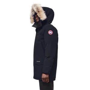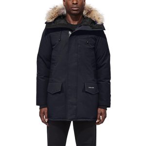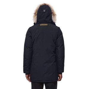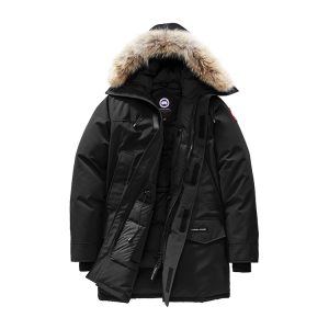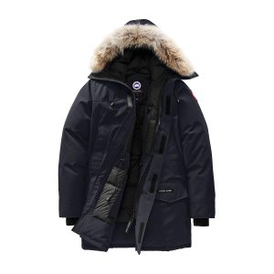 - Exterior pockets: 2 lower pockets secured with Velcro flaps + 2 handwarmer pockets. Canada Goose wordmark on lower left pocket