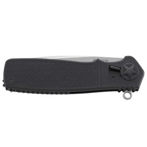 The breakthrough “Field Strip” innovation comes from the shop of world-renowned knife craftsman Ken Onion and has been over ten years in the making. To disassemble the Homefront™ EDC when the knife is in the closed position, push the front release lever away from the blade, then spin the turn release wheel on the rear of the handle away from the pivot shaft—once you feel the handle release, pull it up and away from the blade. Reassembly is as easy as reversing the procedure, allowing for practical, quick maintenance where you stand.