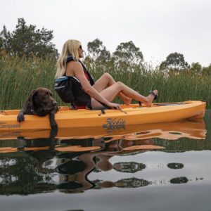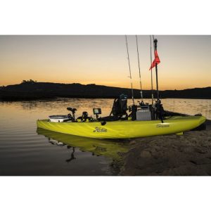 Simplicity defined, the Mirage Compass is powered by the MirageDrive 180 pedal system and Kick-Up Fins. Patented Kick-Up Fin Technology takes the worry out of kayaking in shallow, structure-filled waters by automatically retracting upon impact. Experience forward and reverse pedal propulsion with Hobie's Square Tip Fins. New for 2022 is an anodized aluminum alloy frame seat offering incredible comfort, durability and breathability with monomesh and ripstop nylon construction. The Compass offers maximum stability and an oversized cockpit and flat deck for standing. A sharp turning radius makes this fishing kayak nimble in tight quarters, yet able to speed over open water in stealthy fashion. Kayak fishing features include pre-installed rod holders, H-Track accessory mounts and a transducer cavity ready for you to install a Lowrance® fishfinder. For a stealthy look, upgrade to the Compass Camo package that is outfitted with Kick-Up Turbo Fins and comes in Camo color.