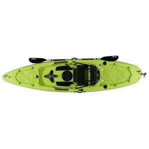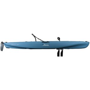 Introducing the Mirage Passport 12 R pedal fishing kayak. Powered by the patented MirageDrive GT pedal propulsion system with Kick-Up Fin technology, the Passport 12 R is versatile enough to take you wherever the fish are biting on your next kayak fishing adventure. With an all-new rotomolded hull construction, the Passport 12 R has a sleek aesthetic, delivering ultimate stability while still maintaining performance and speed on the water. It comes loaded with fish features that guarantee an unforgettable kayak fishing experience. Easily install a fishfinder and mount a shallow water anchor of your choosing with a transducer cavity and scupper and Power-Pole® Micro bracket indent. Designed for long days on the water, the breathable mesh seat provides maximum comfort. Additional features include loads of bow and stern storage with Bungee, 8 inch Twist-n-Seal hatch, two fishing rod holders, two accessory tracks to customize your yak and under seat and gunnel tackle storage. Upgrade with a sail kit or bimini sunshade with the vertical accessory tube. Comes standard with a two-piece aluminum paddle.