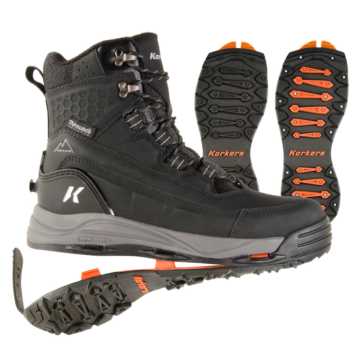 Have you ever been in need of a warm, winter boot that has multiple options for traction? The Korkers Snowmageddon™ is the right boot for you. Quickly change from rubber lugs to carbide studs and enjoy going from snow to ice during whatever winter activity you can think of.