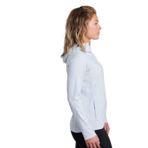 The ultra-light BANDITA™ 1/2 ZIP Pullover Hoody resists the wind, shields the sun, and provides quick-dry performance for warm weather adventure. Breathable, underarm mesh panels allow for airflow while strategically placed, form-fitting seams provide a superior, feminine fit.