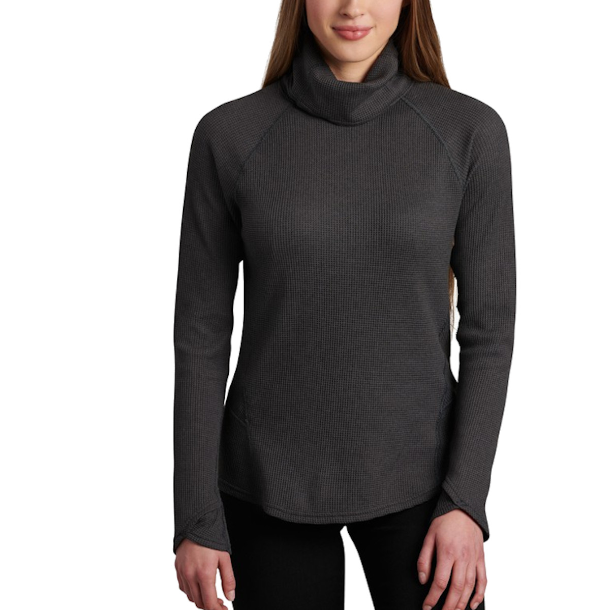Meet the Women's Kuhl Petra Turtleneck. This turtleneck is perfect for chilly days and nights. With flattering design lines and stylish directional fabrics, this turtleneck updates a classic look with a modrn touch. The waffle weaved fabric provides stylish, breathable warmth.