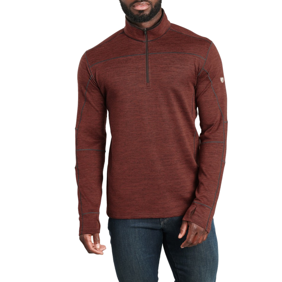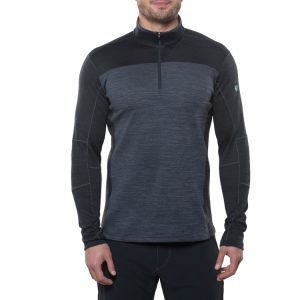 The Men's Kuhl RYZER 1/4 Zip Long Sleeve Shirt is cut from a breathable sweater-knit fabric with moisture management properties to keep you fresh and comfortable. Our exclusive DYNAMIK™ stitching allows for stretch while low bulk seams make layering easy. KÜHL’s signature thumb loops and five-panel articulated sleeves provide function and comfort.
