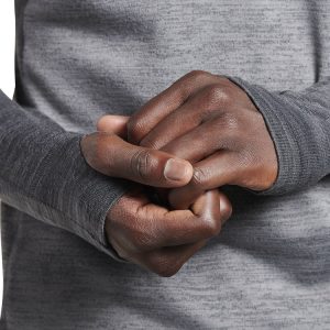 - Brushed sweater-knit fabric has great breathability, is wicking and has stretch for comfort