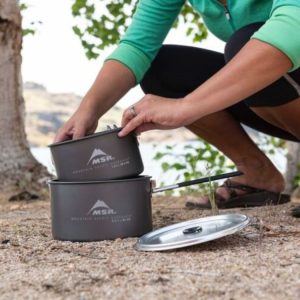 For those backcountry chefs who love to cook on trail, the MSR Ceramic 2 Pot Set is an extra-tough, safe at high heats, and geared for easy clean up pot set. Use the 2.5 liter and the 1.5 liter pots for a meal with sides and after the meal is over, nest together to save on pack space.