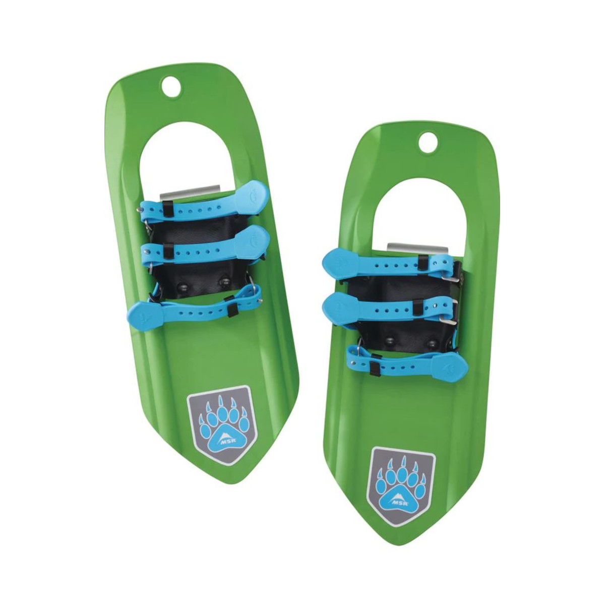 The MSR Tyker Kids' Snowshoe offers excellent traction and flotation in a compact, kid-friendly design. Engineered to carry boys and girls up to 90 pounds, they feature steel crampons and kid-friendly molded traction bars that provide all-conditions grip and maximum safety for little ones on snowy trails.