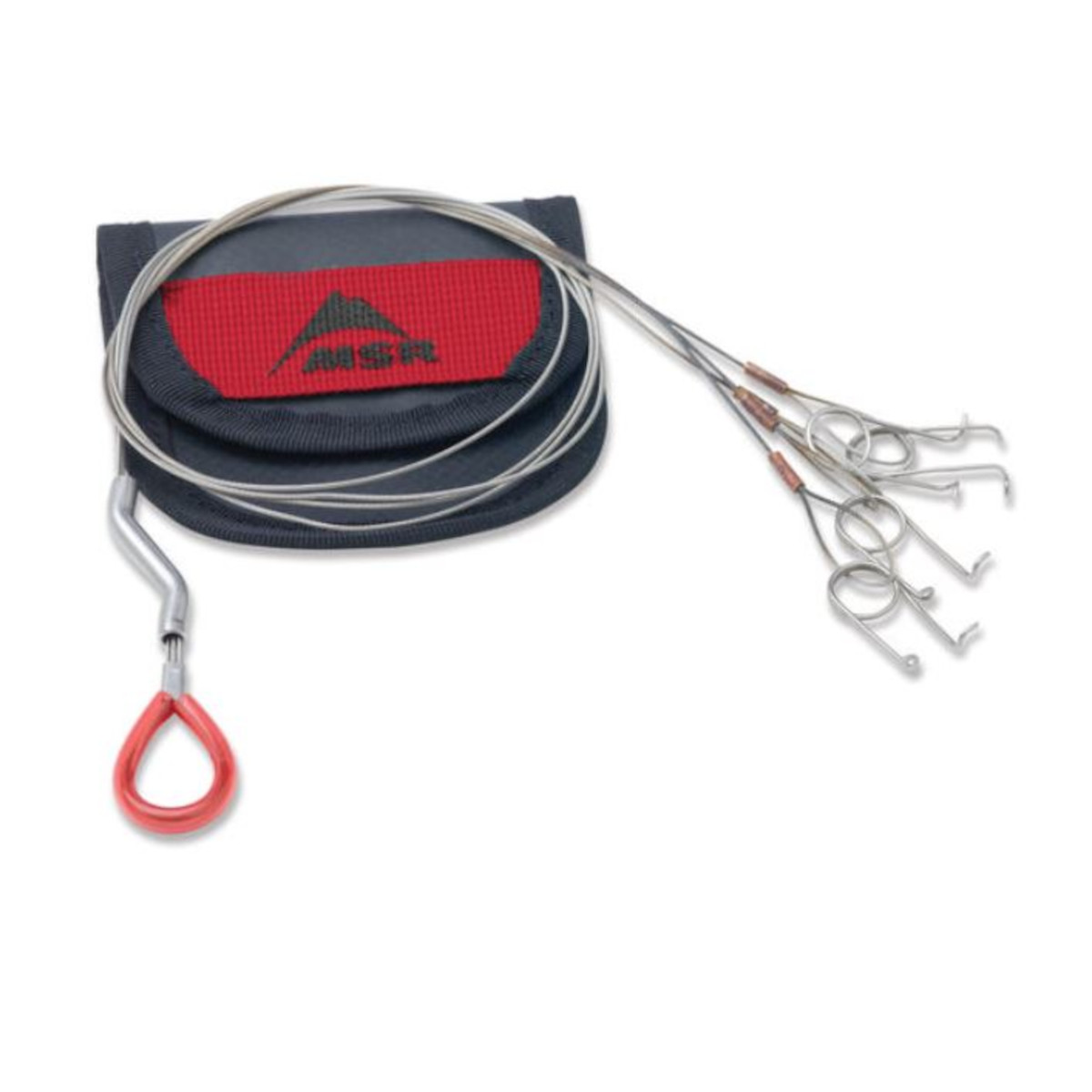 The MSR WindBurner hanging Kit allows you to bring your stove on adventers that lead to the side of a mountain face, in a boat cabin, or in areas were the ground is too unlevel for safe cooking.