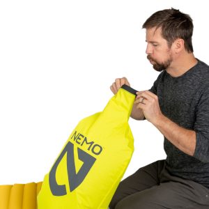 - Reinforced stay-open collar folds over to lock in air for quick transfer to your pad
