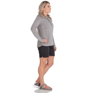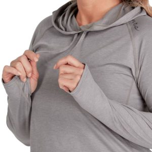 The NRS Women's Silkweight Hoodie gives you the performance and sun protection you need on the water and the ultralight comfort you crave at camp. Features a dropped hem in the back for added coverage, thumbholes to protect your hands as you row and drawstrings to cinch the hood when the wind picks up. Built from 100% recycled material, the technical fabric enhances the body's natural cooling process by wicking excess moisture and drying quickly while also providing UPF 50+ sun protection
