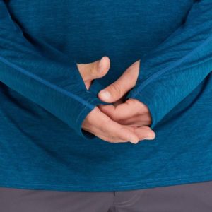 - Laser-cut thumbholes extend sun protection to the tops of your hands without adding unnecessary bulk to the cuffs