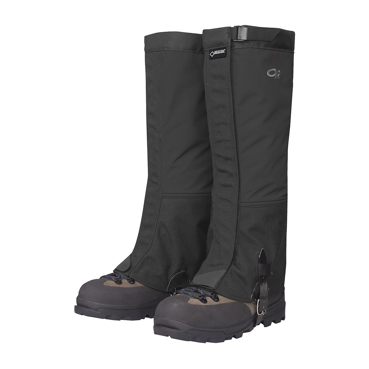 - Design Features: Durable BioThane® Instep Strap; Abrasion-Resistant Cordura® at Inner Leg and Boot; Abrasion-Resistant Lower Boot Lined with Packcloth; Larger Circumference Accommodates; Plastic Mountaineering Boots; Double Stitched Front Closure; Reinforced Boot Lace Hooks; Hook/Loop Front Closure; Buckle Top Closure