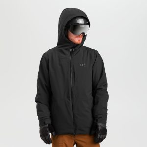 The Men's Outdoor Research Snowcrew Jacket offers a waterproof, breathable, and fully seam-taped shell with high-loft synthetic insulation for warmth without bulk for resort riding in all conditions.