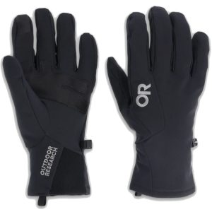 The Outdoor Research Sureshot Softshell Gloves are the ultimate all-around glove for keeping hands warm and dry with touchscreen compatibility. They feature a 2-way stretch woven fabric that is water resistant and breathable, ideally engineered for various activities and weather conditions. The EnduraLoft™ insulation keeps hands warm without bulk, and the ActiveTemp™ treatment regulates body temperature. The palm of the gloves features goat leather overlays for added durability, and the rib knit stretch gusset at the cuff provides a snug and comfortable fit. These gloves are also touchscreen compatible for smartphone use during wear.