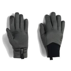 The Men's Outdoor Research Vigor Midweight Sensor Gloves are made for cool temperature hand protection, featuring moisture wicking and quick dry functionality, a brushed fleece lining, and thermo-regulating ActiveTemp™ technology.