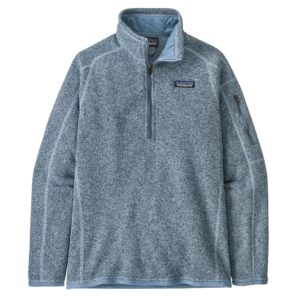 The Women's Better Sweater 1/4-Zip pullover is a knitted, cross-dye pullover sweater that combines the aesthetic of wool with the easy care of 100% recycled polyester fleece. Dyed with a low-impact process that significantly reduces the use of dyes, energy and water compared to conventional dyeing methods. Also Fair Trade Certified sewn.