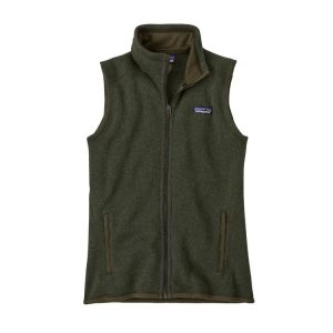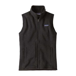 The easy care Women's Patagonia Better Sweater Vest has a sweater-knit face and a moisture-wicking fleece interior. Spun from heather yarns dyed with a low-impact process that significantly reduces the use of dye stuffs. Brushed fabric trims the wind flap, armholes, hem and zippered hand warmer pockets. Feminine seaming lends a contoured fit. Deep interior drop-in pockets stash phone and cash.