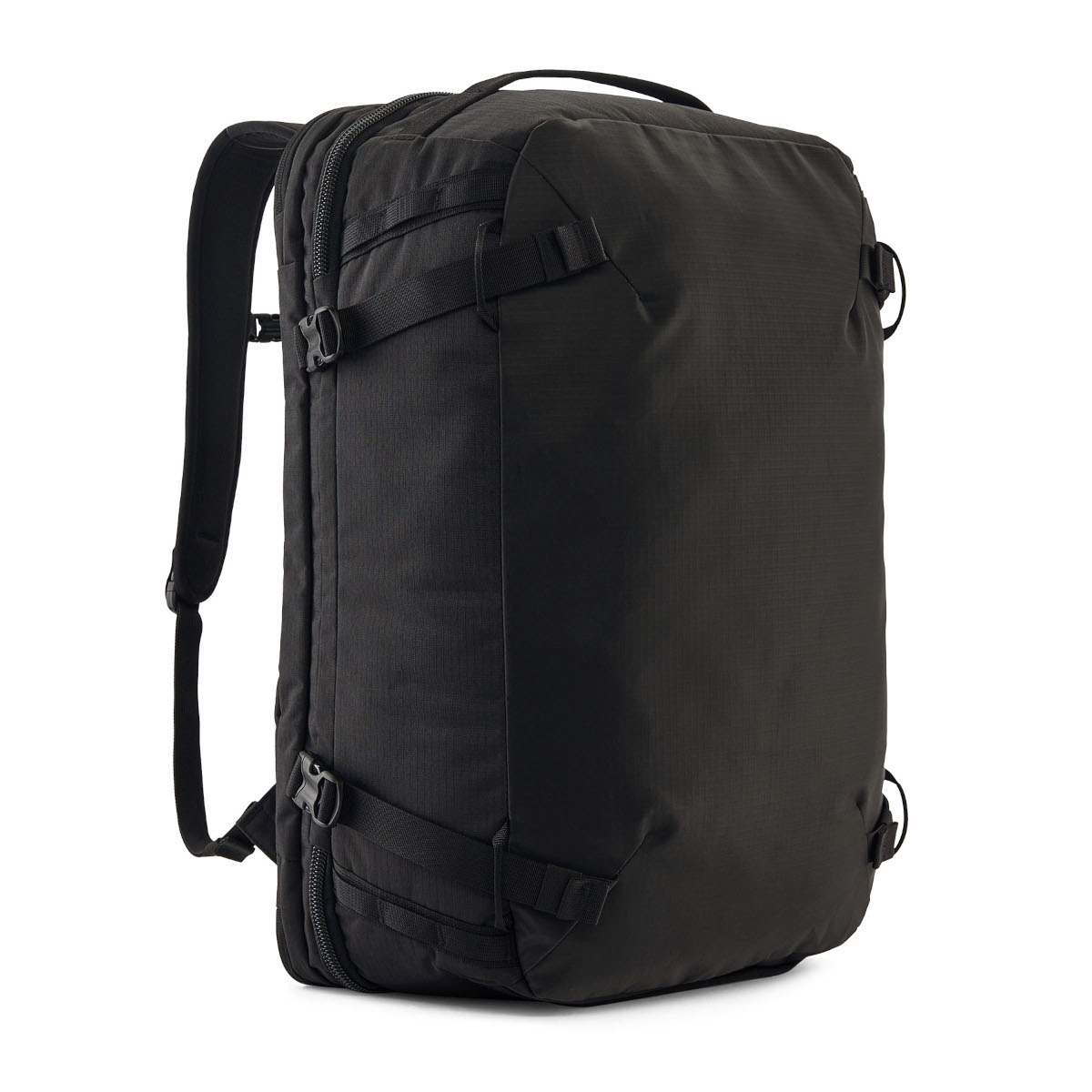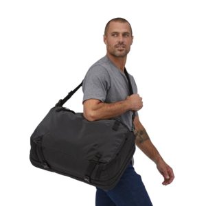 The classic Patagonia Black Hole MLC bag is a soft-sided 45-liter suitcase with enough room for world travel. Convertible backpack straps for comfy load carrying. Also made with 100% recycled body fabric. Meets most carry-on requirements. Three carrying configurations allow bag to be used as a backpack, a shoulder bag or a duffel, and all straps tuck away when not in use.