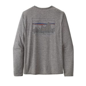 The men's Patagonia Capilene Cool Daily Graphic Long Sleeve Shirt features moisture-wicking, odor control, and UPF 50+ sun protection. For use in the water and on trail, this is Patagonia's most versatile and techniacal top. A natural mositure wicking top, 50+ UPF, and HeiQ® Fresh durable odor control, stay comfortable while under any condition.