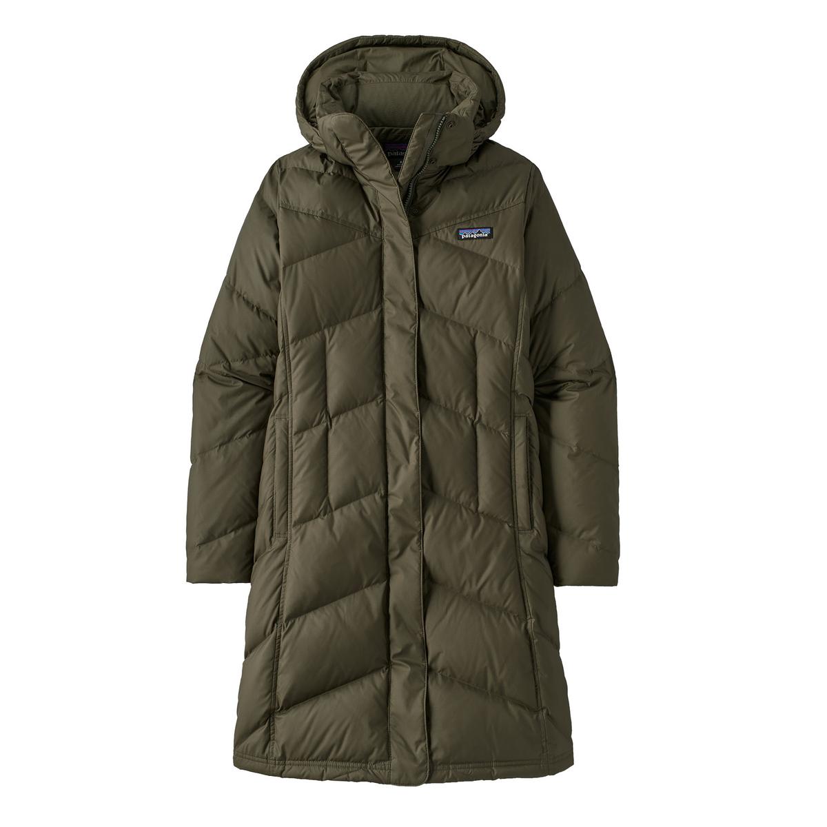 This knee-length Women's Patagonia Down With It Parka has a 100% recycled polyester shell. A removable, insulated hood; and 600 fill power 100% Recycled Down (duck and goose down reclaimed from down products) insulation. Made in a Fair Trade Certified factory.