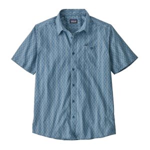 A comfortable, easy-care, short-sleeved shirt that unpacks with few wrinkles, the Men's Patagonia Go To Shirt is ideal for weeks on the road. Its 3.2-oz 60% organic cotton/40% recycled polyester plain weave is light and breathable for warm-weather travel, while the button front, shirttail hem and button-closure chest pocket keep you respectable for meetings and meals.
