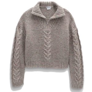 - Cable knit styling on front, sleeves, back