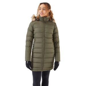 This snug down jacket has a flattering cut and an insulated detachable hood with a cosy, removeable faux-fur trim, perfect for keeping warm on frosty walks. Filled with 700F P P.U.R.E recycled down, the Deep Cover Down Parka offers incredible warmth for its weight. It has a recycled lining and a recycled Pertex® Quantum outer with a fluorocarbon free DWR finish. The cuffs have a stretch fleece lining for a seamless fit with gloves, sealing in heat on freezing winter days. It has a tough, two-way YKK® Metaluxe front zip that has a shiny metal-look, with an internal storm flap for added protection. There is an inside zipped chest pocket, perfect for valuables, and two deep front pockets for plunging in cold hands when the wind picks up. With incredibly sustainable design in a soft, lightweight package, the Deep Cover Down Parka provides warmth, wind and weather protection for every day of winter.