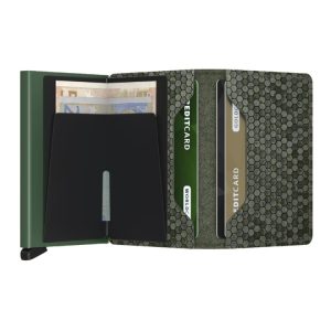 The Secrid Hexagon Slimwallet is a modern take on the classic billfold. Its extra slim profile, without a button or magnet closure system, fits perfectly into every pocket. The generously cut leather holds at least six additional cards, banknotes and business cards. The Slimwallet's open exterior wrap does not feature a button or magnet closure system.