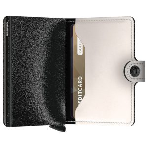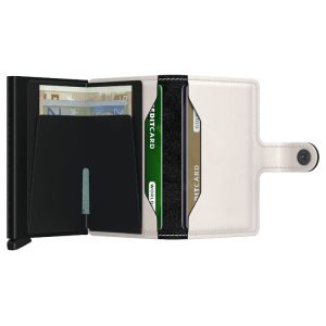 The Miniwallet is a modern take on the classic billfold. With its slim profile it fits perfectly into every pocket. The generously cut leather holds at least an additional six cards, banknotes and business cards. This patented mechanism allows you to slide out your cards with one simple motion, ready for immediate use. The aluminium protects from bending, breaking and unwanted wireless communication.