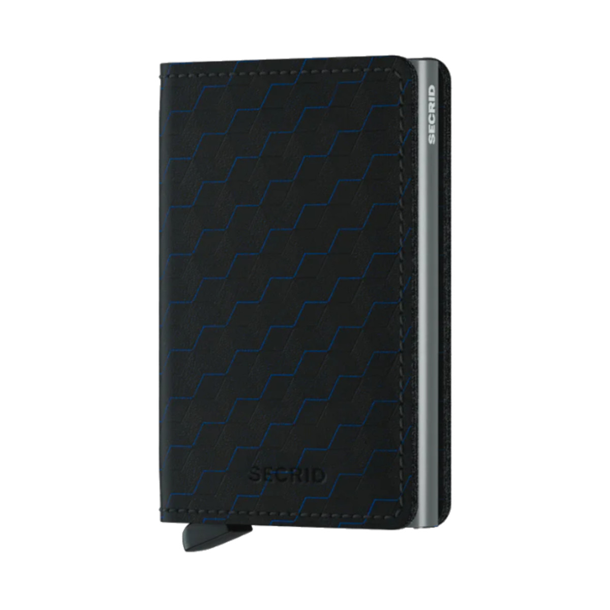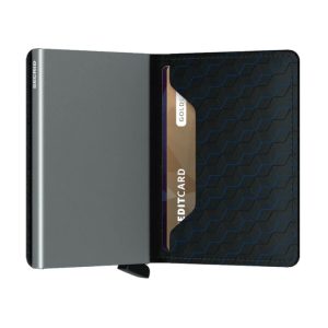 The Slimwallet is a modern take on the classic billfold. With its slim profile it fits perfectly into every pocket. The generously cut leather holds at least an additional six cards, banknotes and business cards. This patented mechanism allows you to slide out your cards with one simple motion, ready for immediate use. The aluminium protects from bending, breaking and unwanted wireless communication.