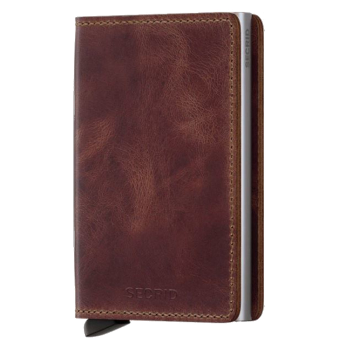 The Slimwallet is a modern take on the classic billfold. With its slim profile it fits perfectly into every pocket. The generously cut leather holds at least an additional six cards, banknotes and business cards. This patented mechanism allows you to slide out your cards with one simple motion, ready for immediate use. The aluminium protects from bending, breaking and unwanted wireless communication.