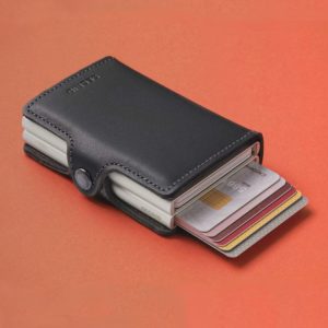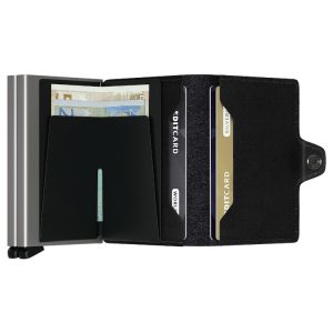 With two Cardprotectors to hold double the content, the Twinwallet carries up to 16 cards, banknotes and receipts, but remains compact in size.