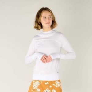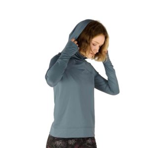 Made from a blend of moisture wicking polyester and stretchy spandex with HeiQ Fresh odour control, the Aarti Hoodie offers breathability and unrivalled warmth without the additional bulk. It's beautifully designed a crossover high neck hood and a high cuff for a relaxed fit. A UPF 50 rating provides additional protection when the sun appears from behind the clouds.