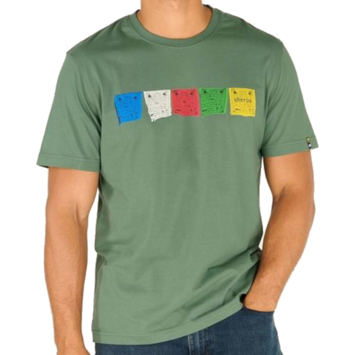 Tarcho is the name given to Tibetan prayer flags – colourful rectangular cloth, often found strung along mountain ridges and peaks high in the Himalayas. The vibrant prayer flags are depicted on the chest of this soft and durable addition to your summer wardrobe. We've also woven prayer flags into the classic crew neck of the tee to prevent it from stretching out of shape. A real dedication to the Tarcho.