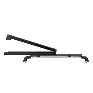 Aerodynamic slide-out rack for convenient loading and unloading of skis and snowboards. Extendable for easy loading and unloading, without having to stretch over the car roof.
