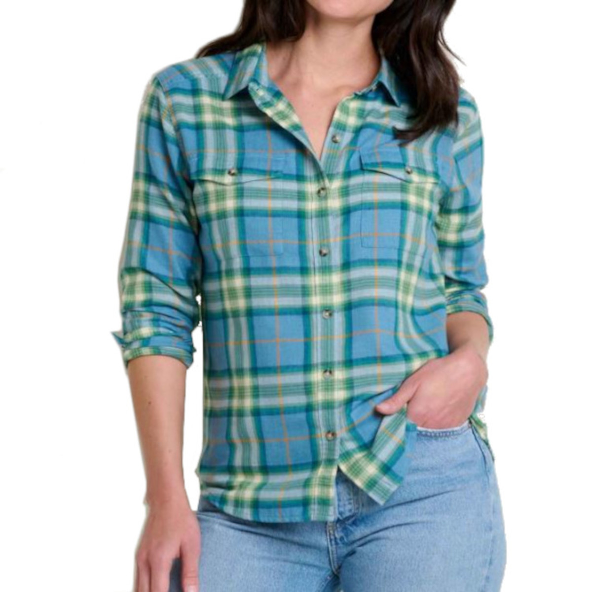 A flannel shirt fit for an outdoor queen. Featuring a lightweight herringbone weave available in epic color combos made better by recycled polyester. The Women's Toad&Co. Re-Form Flannel Shirt is a great addition to fall and winter wardrobes.
