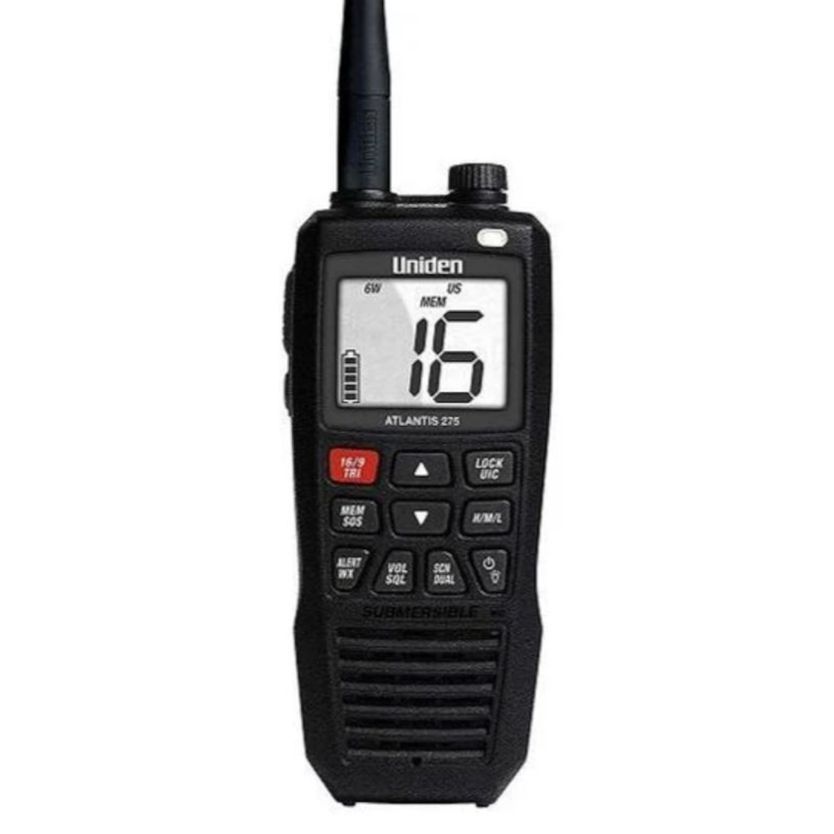 The Atlantis 275 Handheld Two-Way Floating VHF Marine Radio has many safety features built in. Submersible with a built in tone to clear out water from speakers this waterproof radio also includes a flashlight, a strobe light and day and night backlight so you can enjoy time spent on the water whenever you want. Stay safe on the water with the Alantis 275 marine radio.